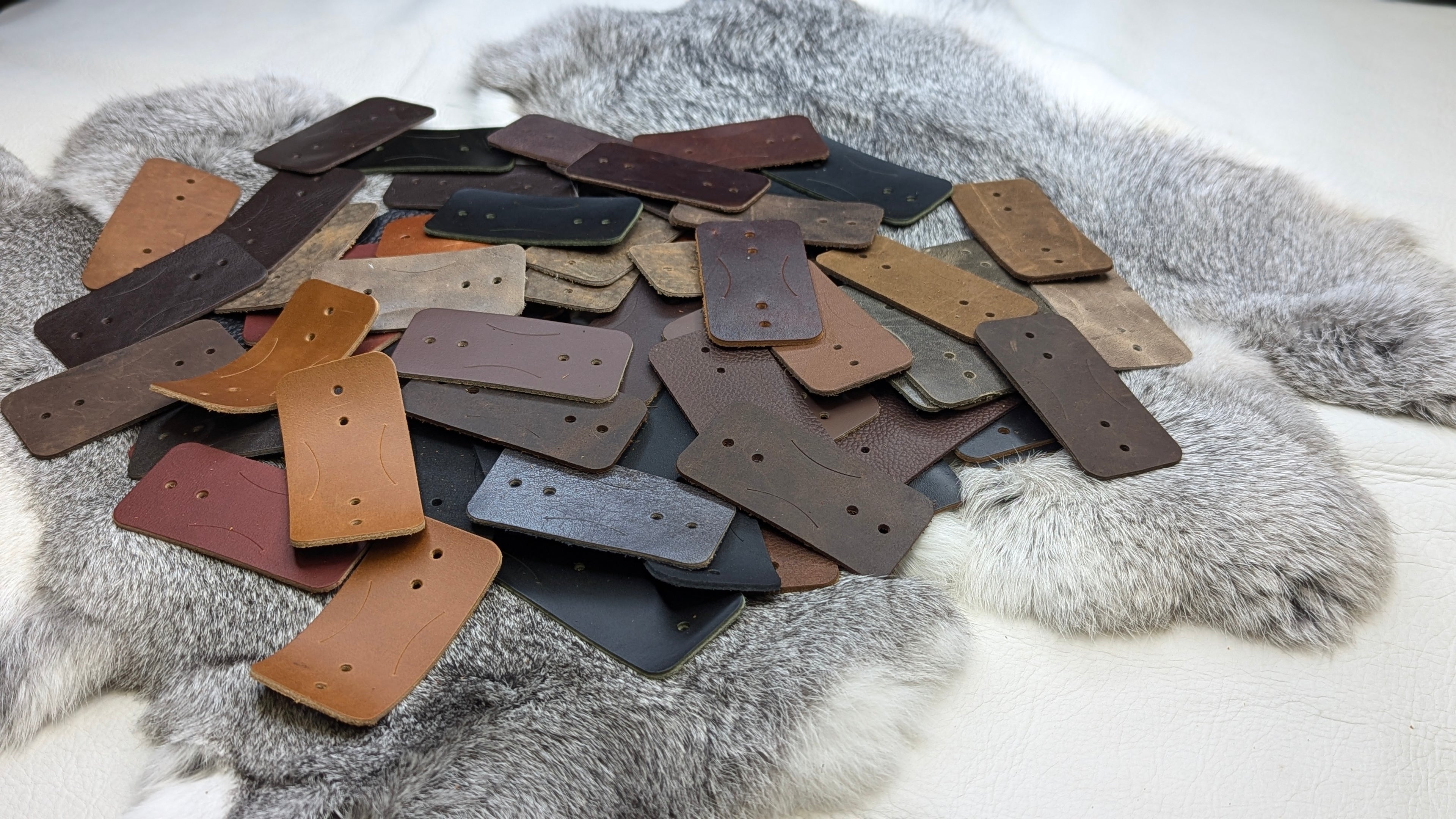 Your Misfit Grab Bag will contain an assortment of LoopGuards, made from approximately 2mm leather, in a range of tempers (firmness) and textures (feel).