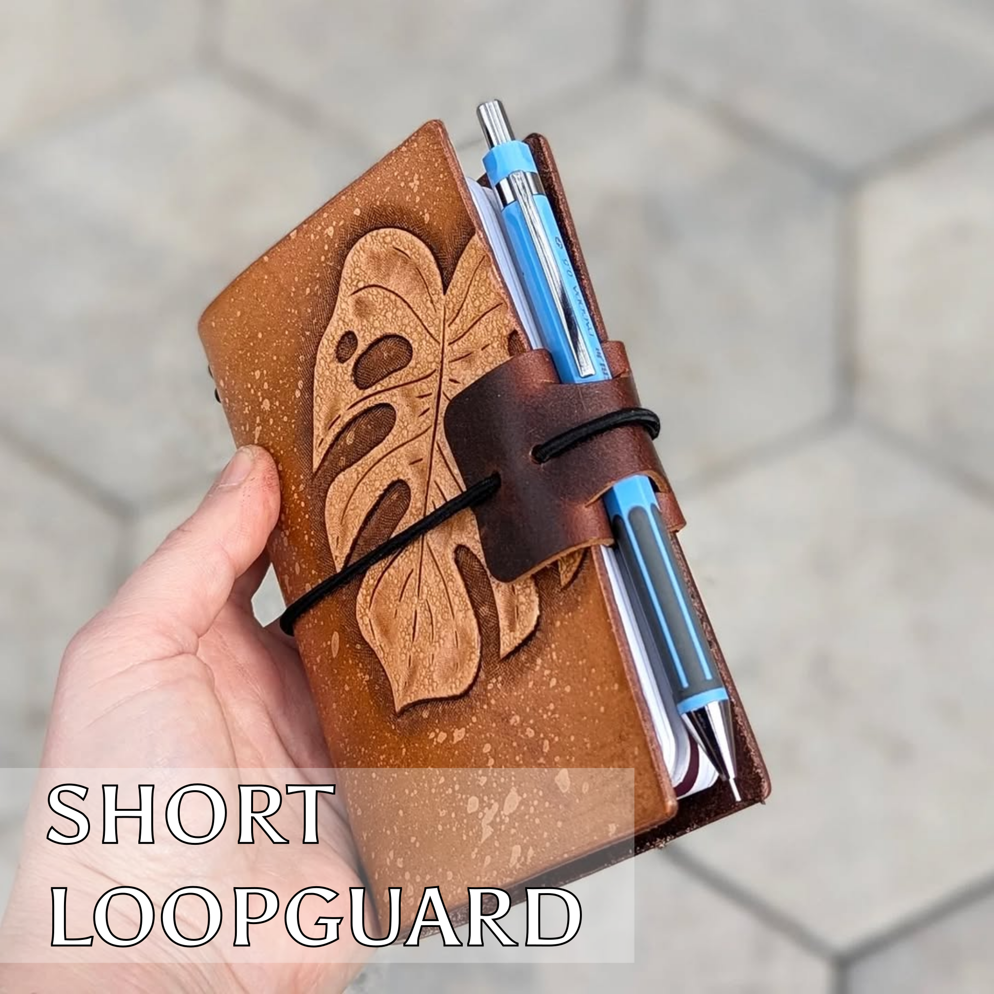 Meet your notebook’s new best friend! LoopGuard is a simple leather tab that does double duty - holding your pen snugly in place, while keeping the elastic from denting the leather cover.